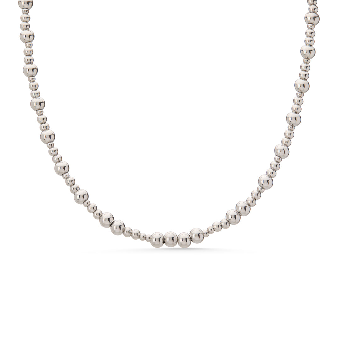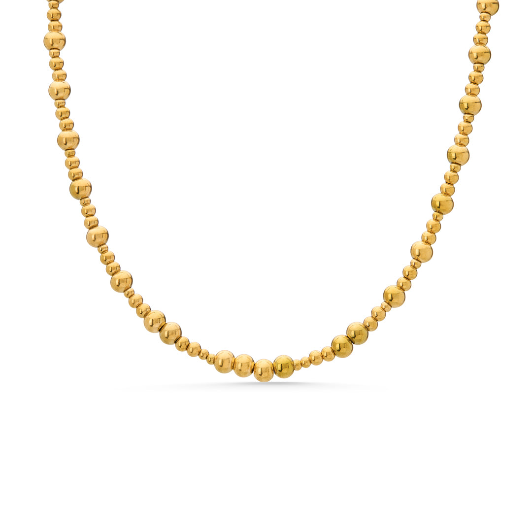 Timeless with a twist. The Liana Necklace features a string of mixed-size polished beads, creating a modern yet classic silhouette. Wear it solo or layer it for effortless everyday shine.
